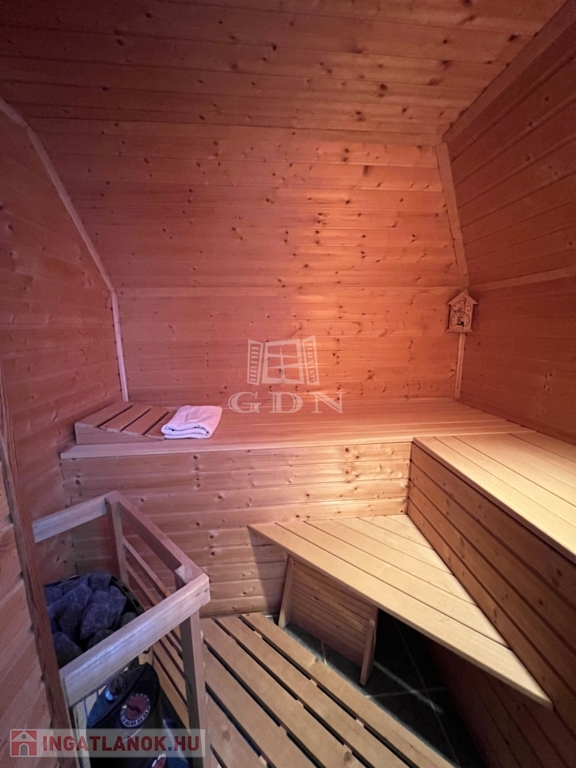 EGYÉB FELSZERELÉS ÉS INFORMÁCIÓK: távirányítható motoros kapu és garázskapu, napelemmel fedett kerti kocsibeálló, többfunkciós kemence, csapadék gyűjtő csőhálózat + 13 m3-es ciszternával, amely befogadja az épületre jutó teljes csapadékmennyiséget, automata öntözőrendszer ( ciszternáról és hálózatról egyaránt működtethető ), locsoló vízmérő a kerti csapokhoz és az öntözéshez, kapu mellett szerelőakna, kerti fatároló 12 m², alagsorban ipari teljesítményű elszívó rendszer + sűrített levegőhöz használható csőrendszer, alagsorban és földszinten is élesíthető riasztórendszer illetve megfigyelő kamerarendszer, optikai kábeles csatlakozás a telek előtti oszlophoz.