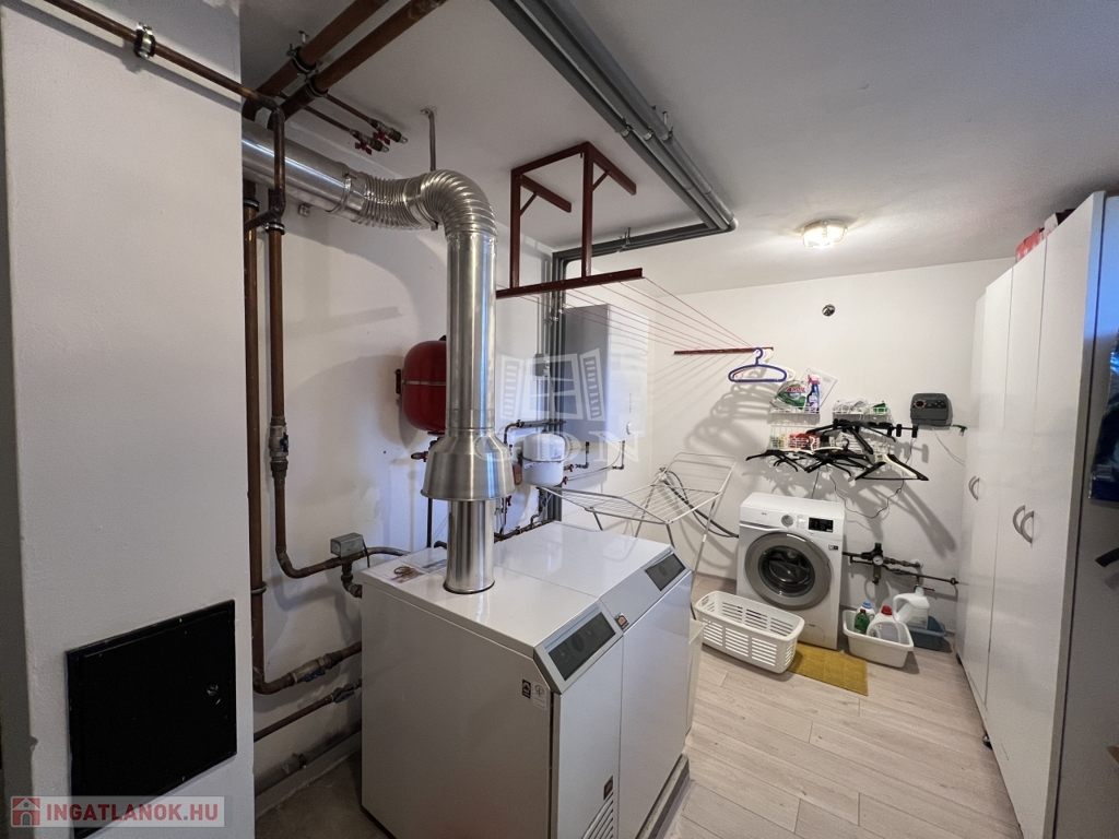 -Hőleadás: mind a három szinten külön szabályozható termosztáttal, radiátorokkal és a hideg padlóburkolatos helyiségekben padlófűtéssel, illetve a földszinten cserépkályha, valamint összesen 3 db inverteres hűtő/fűtő klímával.