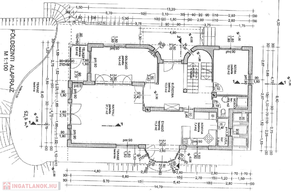 Méretek, tájolás, elrendezés az alaprajzokon látható.