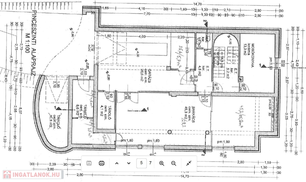 Pinceszint (félszuterén) alapterülete: + 110,6 m²