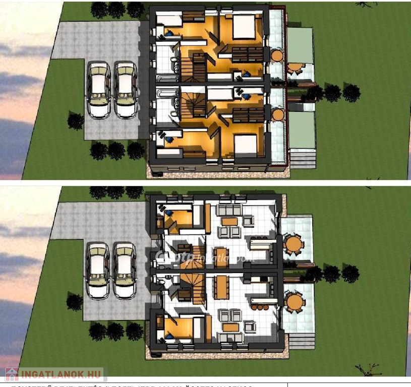 Budapest XXII. kerületének közkedvelt részén, Nagytétény híres neves utcáinak egyikében eladó 2 db 92,8 m²-es, nappali + 4 hálószobás új építésű ikerházfél, külön-külön saját telekkel és kocsibeállóval.