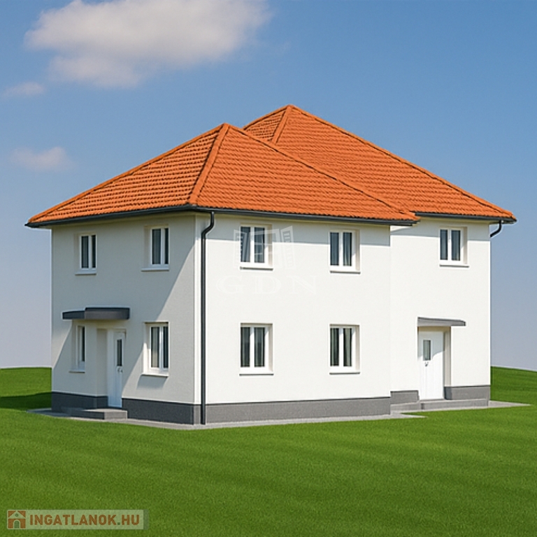 MODERN, HŐSZIVATTYÚS, ÚJÉPÍTÉSŰ, KULCSRAKÉSZ IKERHÁZ zöld környezetben.