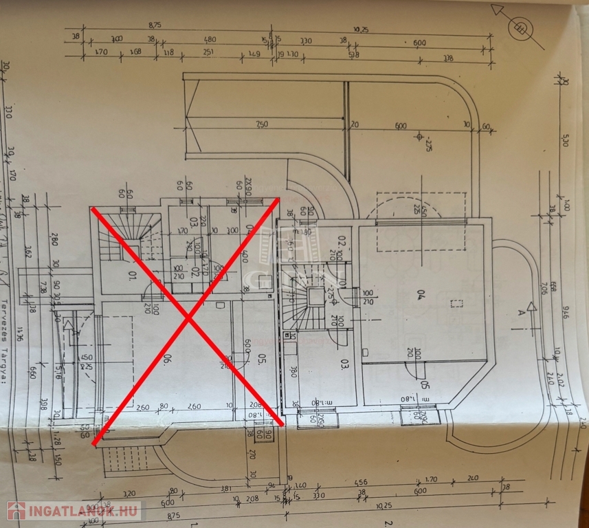 -Pince: közlekedő+lépcsőház(10,23m2), garázs(49,56m2), kazánház+tároló(12,54m2), tároló(5,28m2).