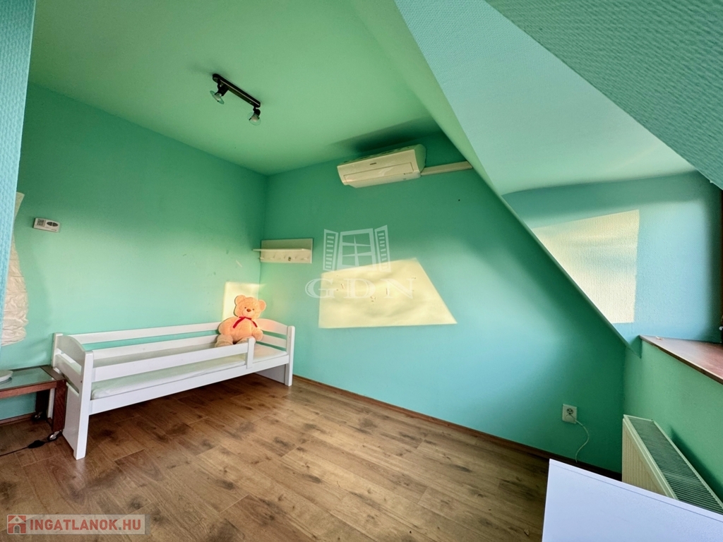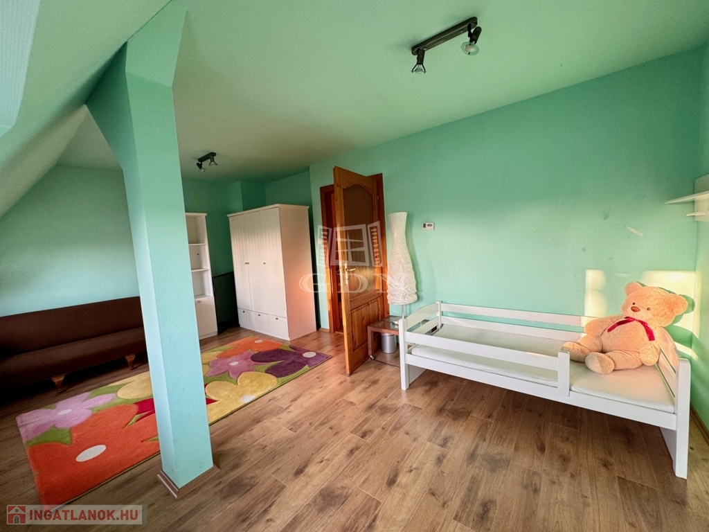 Jelenleg az emeleten két szoba összenyírásra került, ami igény szerint kis átalakítással két külön szobává alakítható vissza, ahogyan az alaprajzon is látható.