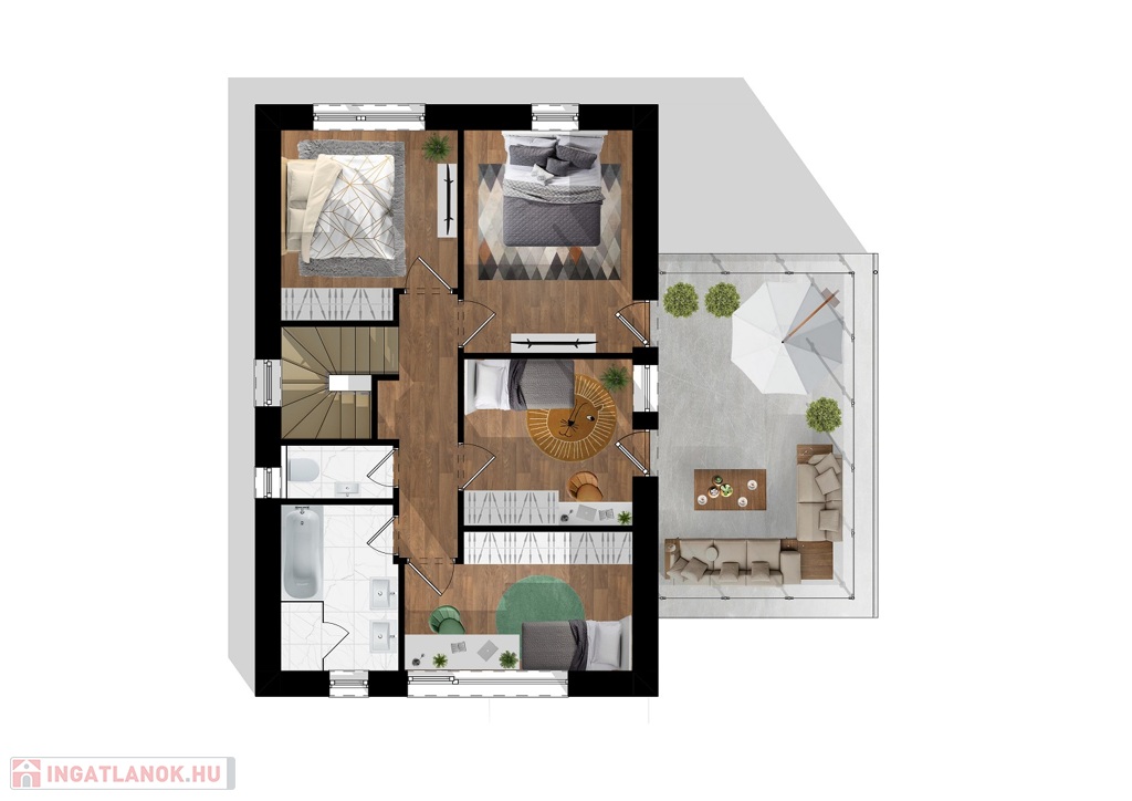 Az ingatlanok földszintjén az aktív időtöltést, családi együttlétet szolgáló helyiségek, az emeleten pedig a pihenést szolgáló hálók kaptak helyet, így ezek jól elkülönülnek egymástól, ezzel még inkább emelve az egyébként is magas komfortérzetet.