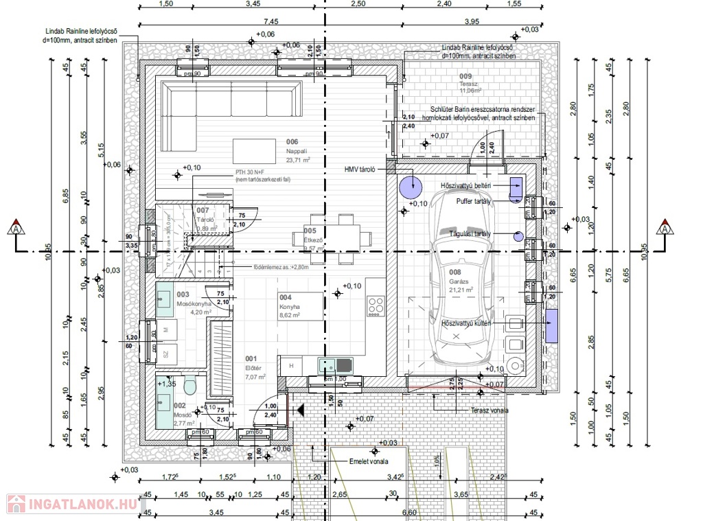 Az új építésű ingatlan rendelkezik egy 21,21 m2 garázzsal.