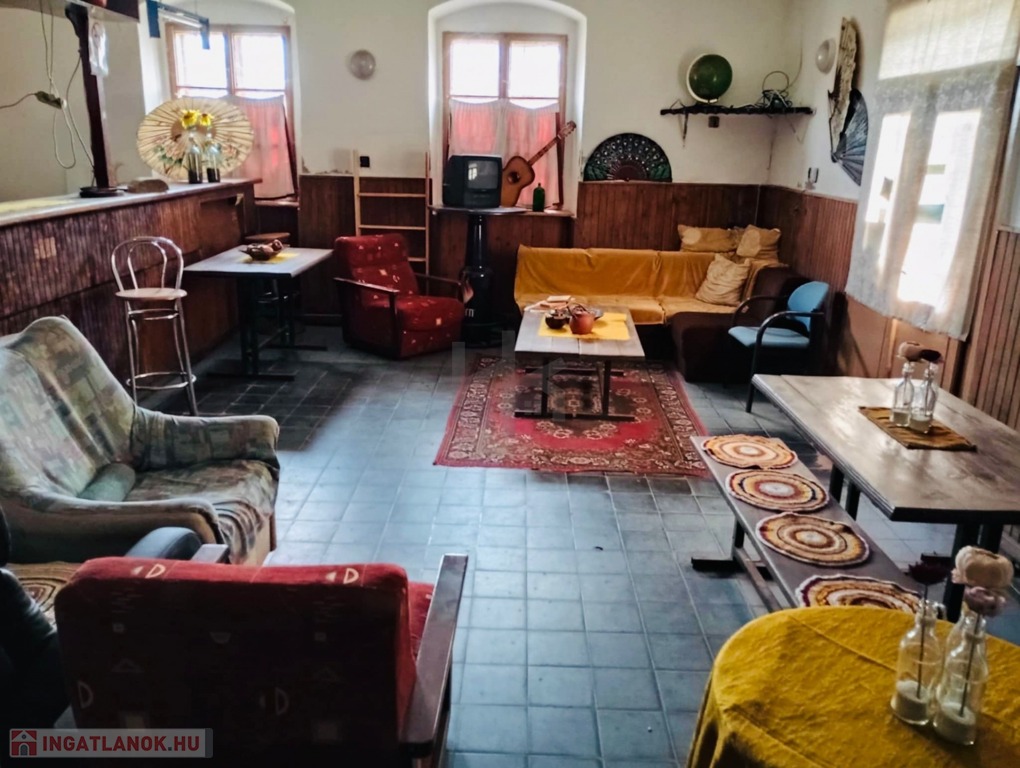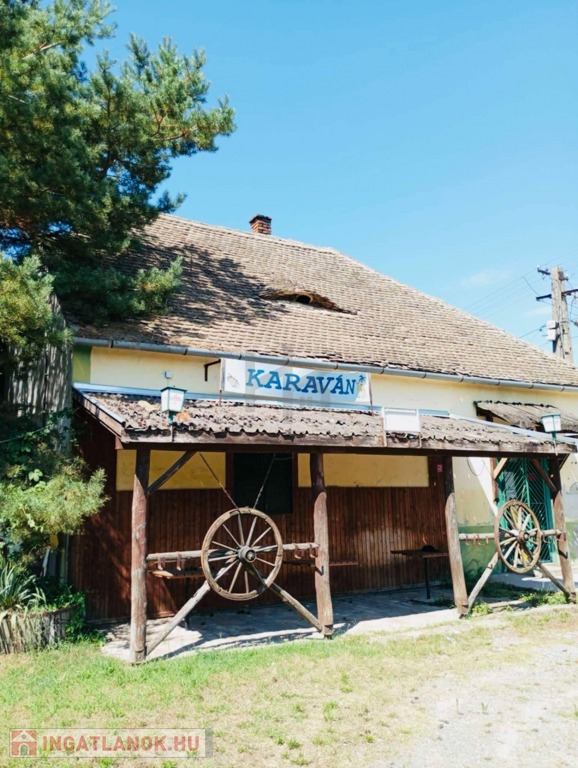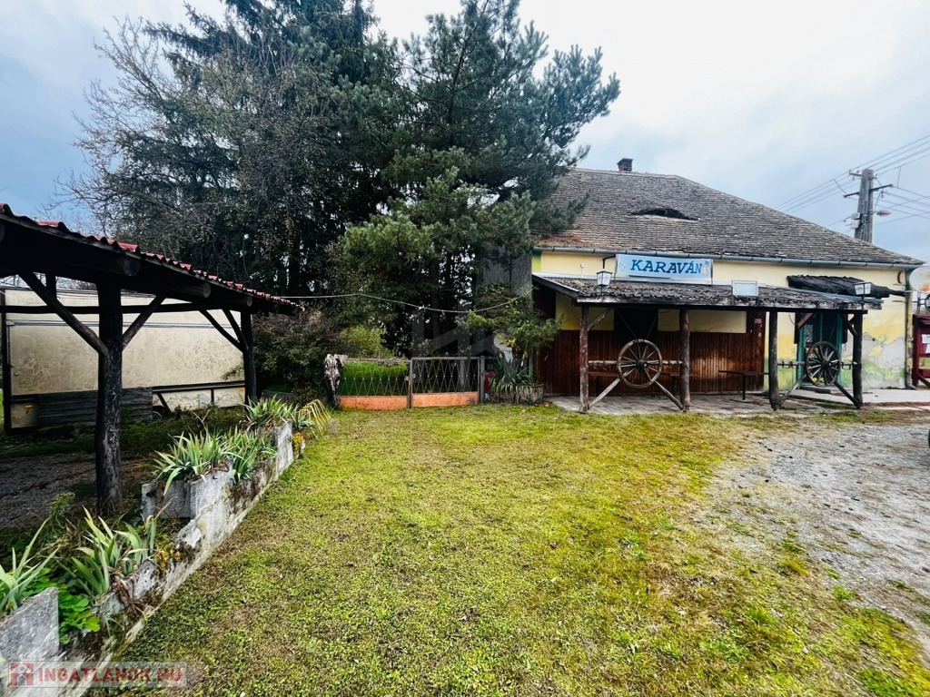 - az ingatlanon található egy részben alápincézett, földszintes, volt italboltot és lakást magában foglaló főépület és fedett kiülő