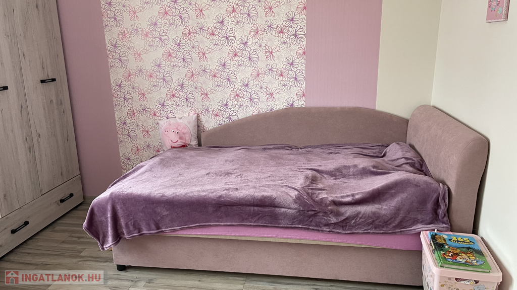 -Szobái laminált parkettával, míg a többi helyiség járólappal burkolt.