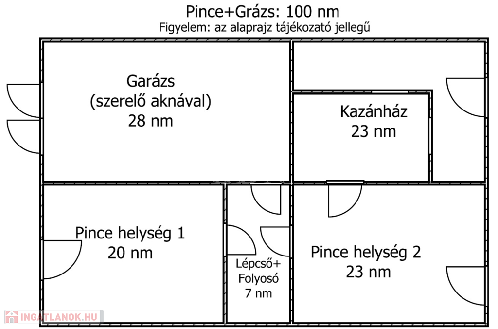 A garázs+pince hasznos alapterülete 100nm, melyben található: