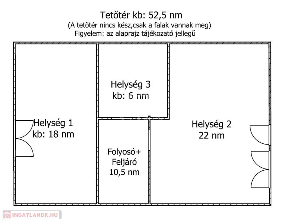 A tetőtér hasznos alapterülete 55nm, melynek kiépítése már félig megvalósult, a befejezése az új tulajdonosra vár.