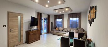 -tágas, világos nappali , közvetlen kijárattal a fedett teraszra