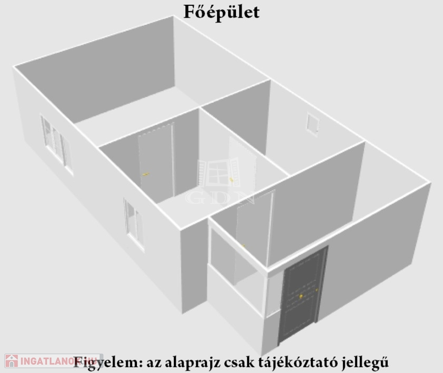 A ház falazata jó állapotú, de a többi része erősen felújítandó vagy bontandó.