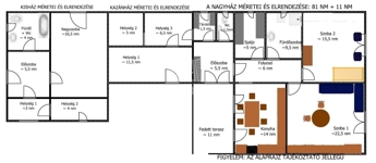 - nagyház (lakó épület): 81 nm+ 11 nm fedett terasz,