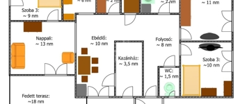 A főépület (földszint) alapterülete 87nm, melyben található: