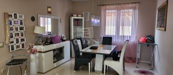 Természetesen az épület minden pontja riasztóval felszerelt. A garázs távirányítóval nyitható, illetve a garázsba a házból is be lehet jutni. Egy nagy térkövezett, fedett terasz is rendelkezésünkre áll, ahova a házból egy nagy toló ajtón keresztül könnyen kijuthatunk.