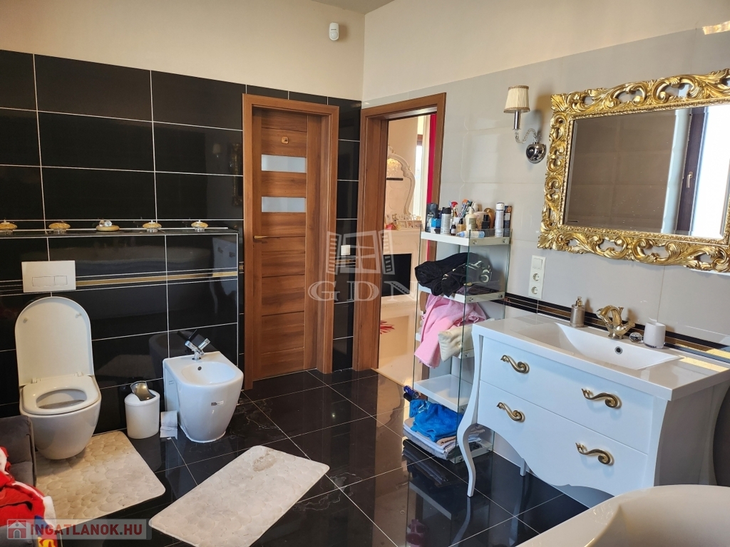 Az ingatlan felszereltsége, kialakítása és kinézete egyértelműen exkluzívnak mondható. További előny, hogy egy nagy telek áll rendelkezésünkre, amelyen rengeteg vágyunkat megvalósíthatjuk, virágos kert, gyerekeknek játszótér, gyümölcsfák, stb.