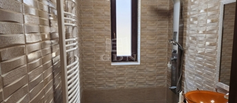 A házban minden közmű megtalálható. Az ingatlan exkluzív szaniterekkel van felszerelve. A nappali, konyha, előtér, lakótér+ ebédlő műgyanta padlót kapott, a fürdők+ WC, spájz és mosókonyha járólapot a szobák, gardrób pedig parketta burkolatot kapott.