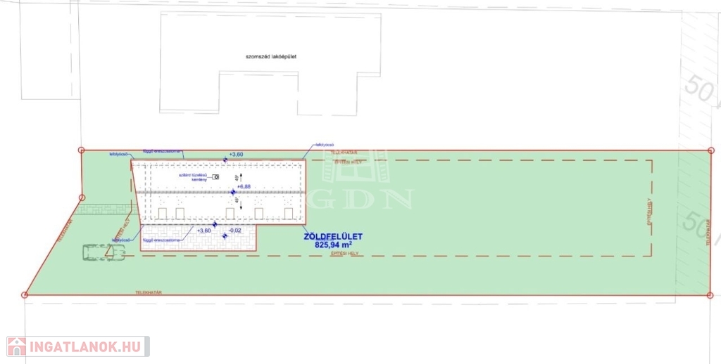 Az építési telek LKE-11 övezeti besorolású, az utolsó beépítetlen telek az utcában, amit egy magánúton át lehet megközelíteni. Jelenleg a villany a telek előtt, kút van a telken belül, a víztervek rendelkezésre állnak, gáz nem lesz bevezetve az ingatlanba. Víz és csatorna vezetékek rendelkezésre állnak. A beépíthetőség 20%, az épület magasság 5,5 m, a zöldfelület minimum 50%.