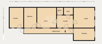 A tetőt néhány éve cserélték, viszont vízkár következtében a pince beomlott, valamint az utólag épített félszoba megsüllyedt.