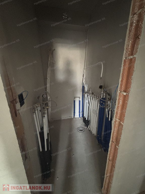 3, lakás nettó 60,77 m2 + 9,29 m2 terasz, nappali + 2 háló, 119 m2 telek, fan-coil klíma (a hálószobákban kiállás előkészítés), riasztó, kaputelefon, 2db parkoló