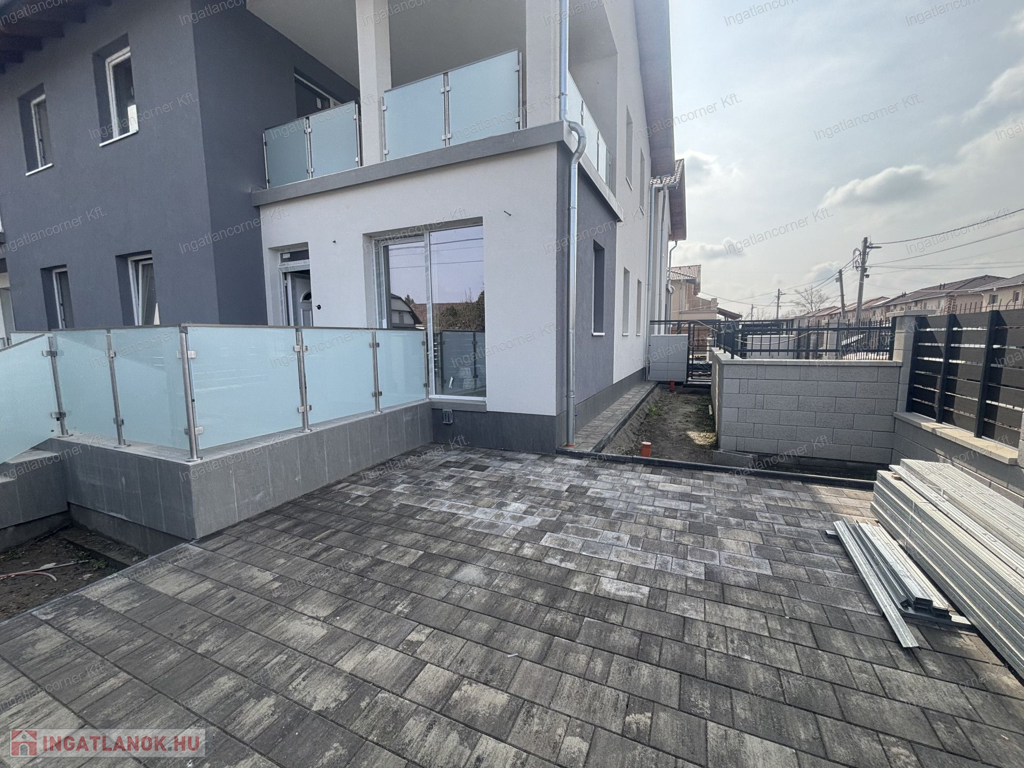 4, lakás nettó 59,77 m2 + 9,74 m2 terasz, nappali + 2 háló, 108 m2 telek, fan-coil klíma (a hálószobákban kiállás előkészítés), riasztó, kaputelefon, 2db parkoló