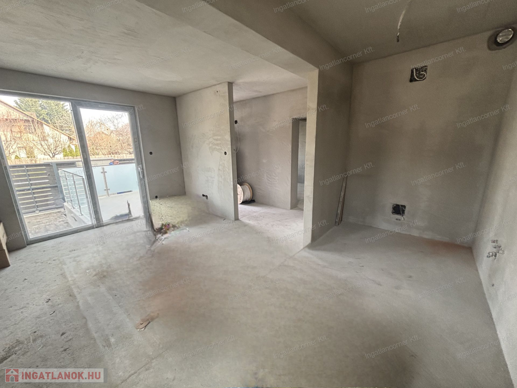 2, lakás nettó 57,03 m2 + 13,83 m2 terasz, nappali + 2 szoba, 173,5 m2 telek, fan-coil klíma (a hálószobákban kiállás előkészítés), riasztó, kaputelefon, tároló, 2 db parkoló. utca