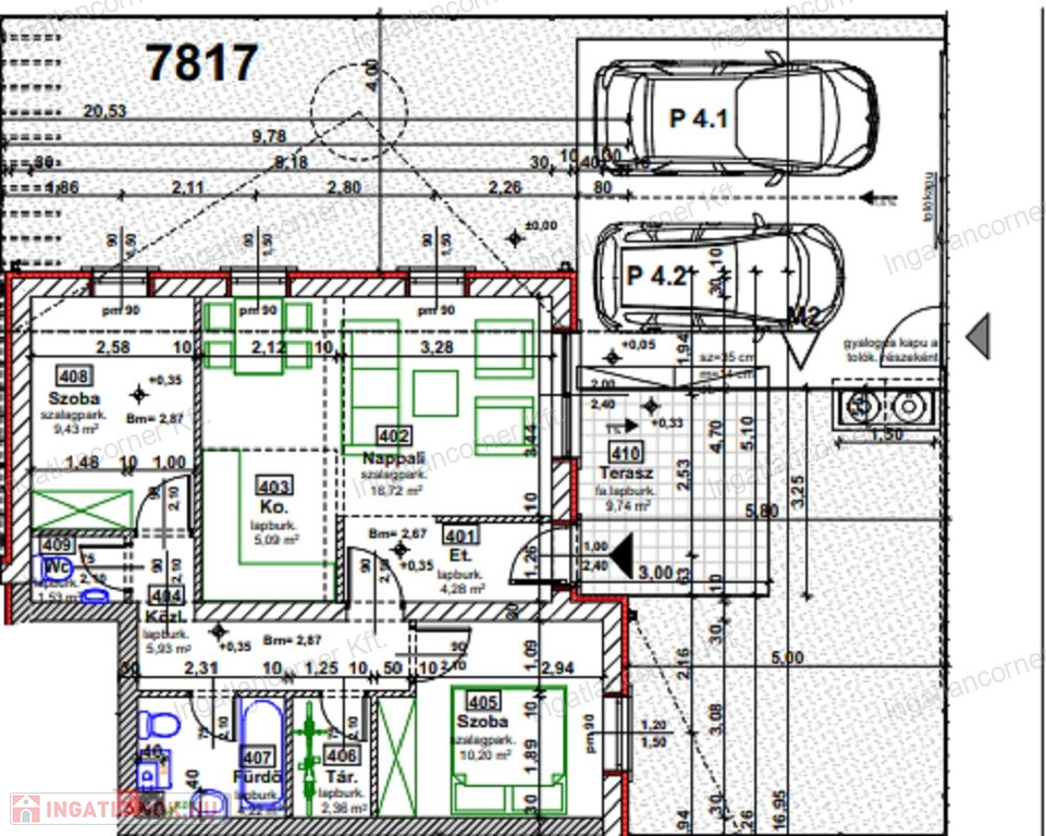 •Laminált parketta a hálószobákban, hidegburkolat a többi helyiségben (szabadon választható 3.000,-/m2-ig tartalmazza az ár)