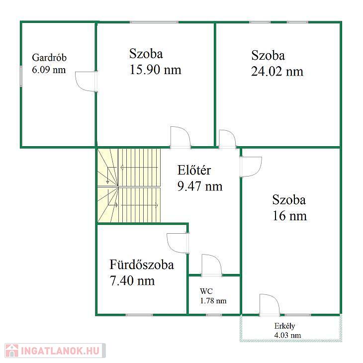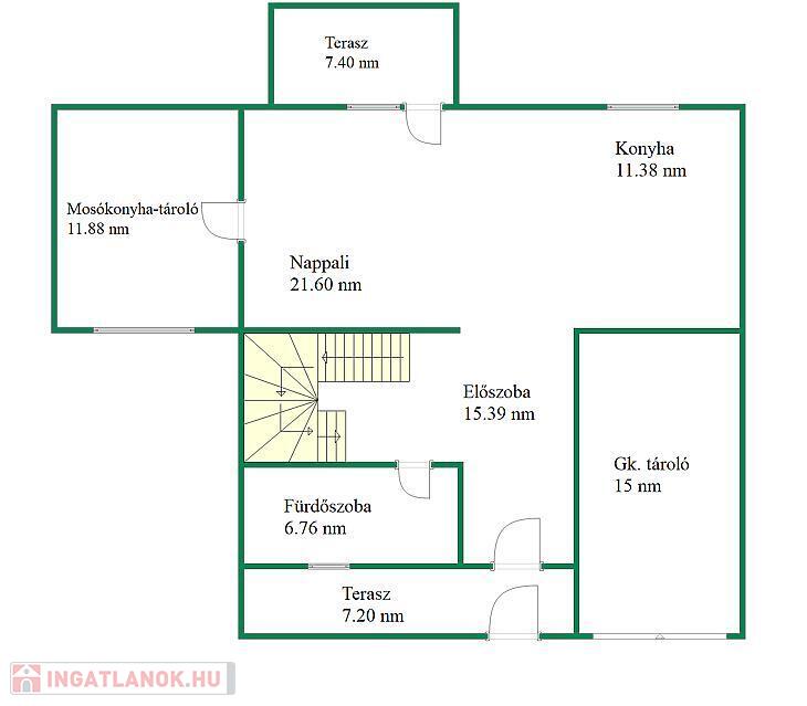 Az ingatlan 172 nm összterületű, ebből 139 nm lakótér. A kialakítás kifejezetten jól használható: négy hálószoba, amerikai konyhás nappali, gardrób, két fürdőszoba + külön WC biztosít elegendő teret akár nagyobb családnak vagy több generációnak is.
