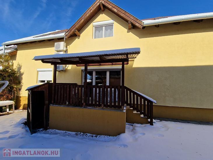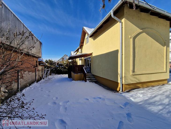 A házhoz emeleti erkély, hátsó terasz, beépített utcafronti terasz, valamint garázs tartozik. A ház előtt viacolorral burkolt parkoló van kialakítva, amely két autó számára kényelmes megoldást nyújt.