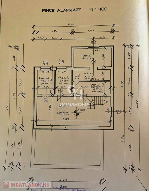 - A ház 80%-ban alápincézett, 5 helyiségből áll