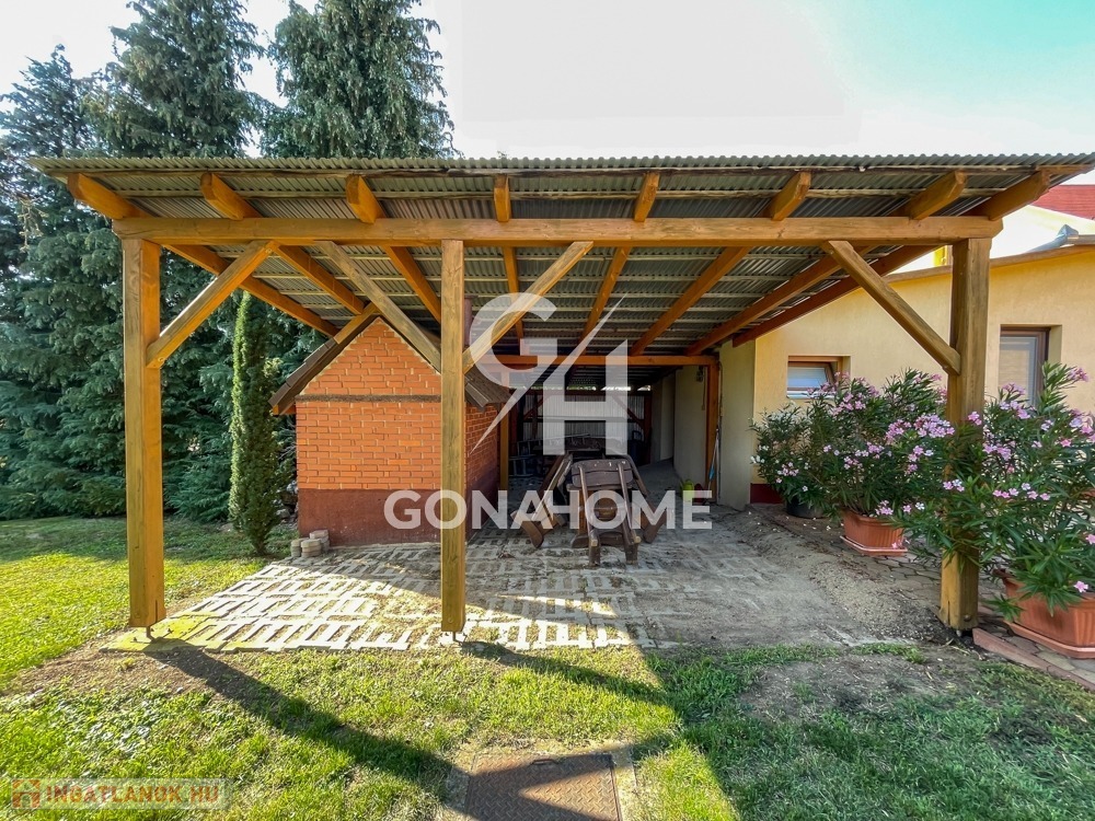 A tágas, jól szeparált telek fedett kiülővel, padokkal és bográcsozási lehetőséggel rendelkezik.