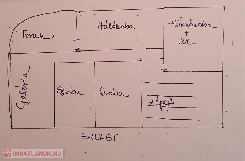 Az emeleten közlekedő, 3 szoba, gardrób, galéria, WC-s fürdő, közel 16 nm-es panorámás terasz található.