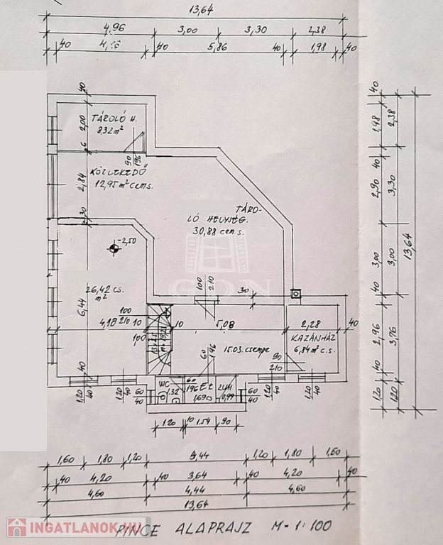Szuterén: konyha és közösségi tér, fürdőszoba, edzőterem, kazánház, illetve kívülről is megközelíthető pince (44 m2) és tároló (8m2)