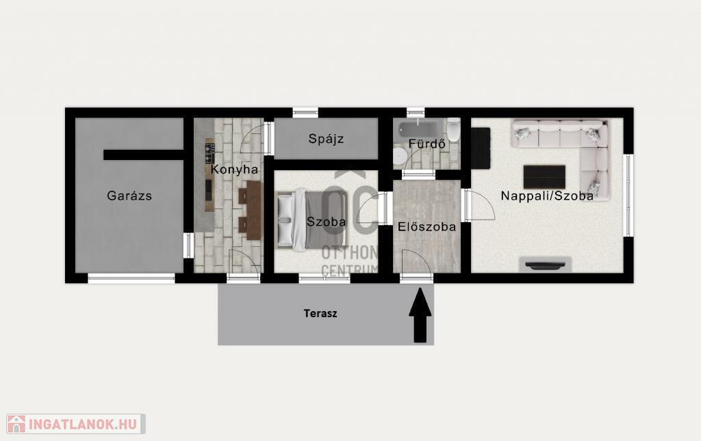 A házhoz egy kellemes, fedett terasz kapcsolódik, ami tökéletes helyszíne lehet egy nyugodt reggelinek vagy egy meghitt esti beszélgetésnek. A két tágas, világos szoba ideális kényelmes családi élethez, a nagy konyha-étkező pedig meghitt, közös pillanatokat kínál. A ház praktikus kamrával rendelkezik, ahol minden elfér, amire a mindennapokban szükség lehet.