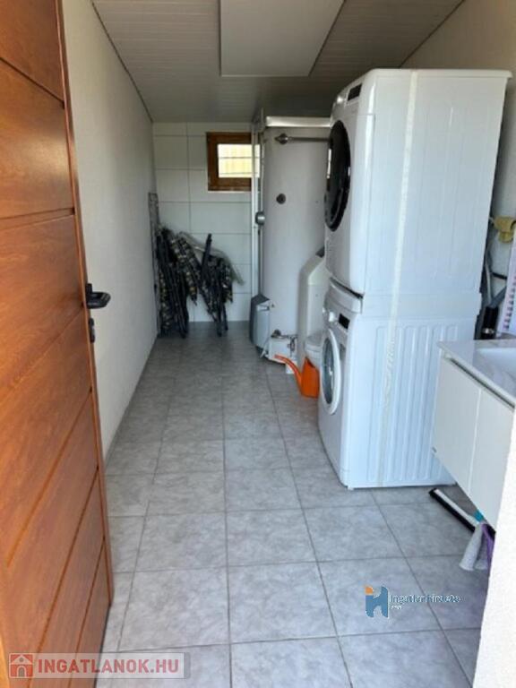 Az udvarról külön bejárattal található a mosókonyha, tároló és a garázs.