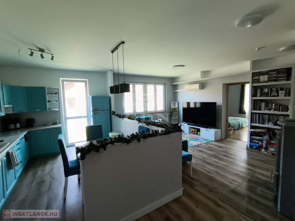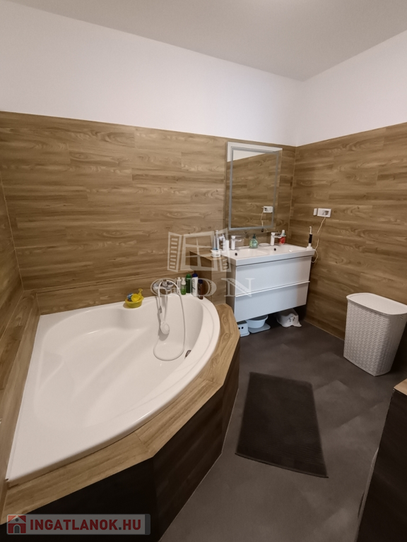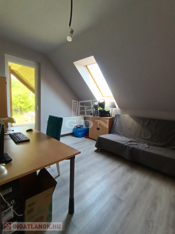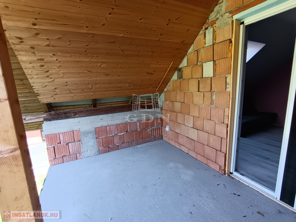 Beépített tetőtér: 98 nm hasznos alapterület. Előtér, nappali, 3 szoba, fürdőszoba, mosdó, tároló, 2 nagy méretű erkély (az erkélyen a korlátok még hiányoznak, és a burkolat is).