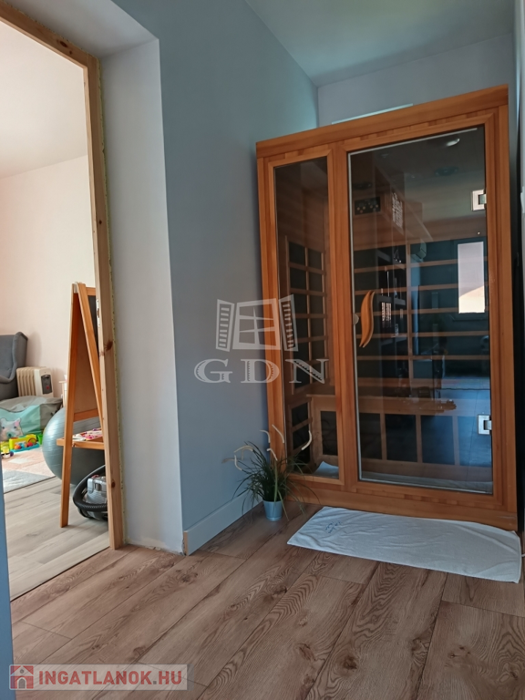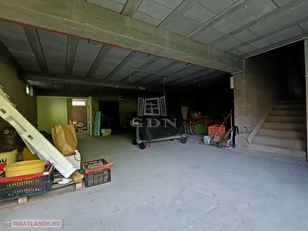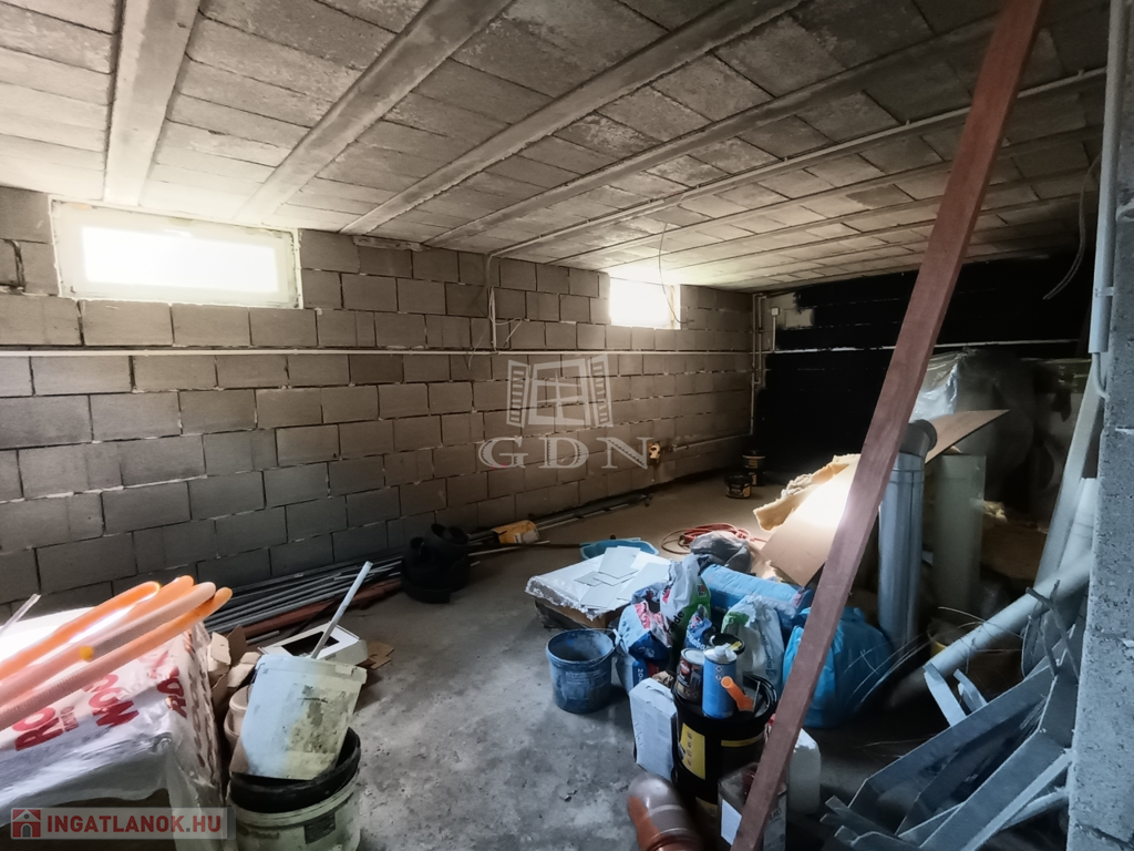 pinceszint: 98 nm hasznos alapterület. Az elektromos beállón át egy 3 állásos garázsba érkezünk, amely után a wellness részlegnek tervezett helyiség található (a csövezés és a kiállások az elektromosságnak, és a víznek kész vannak, azonban a wellness gépek, és a festés, burkolás még hiányzik).