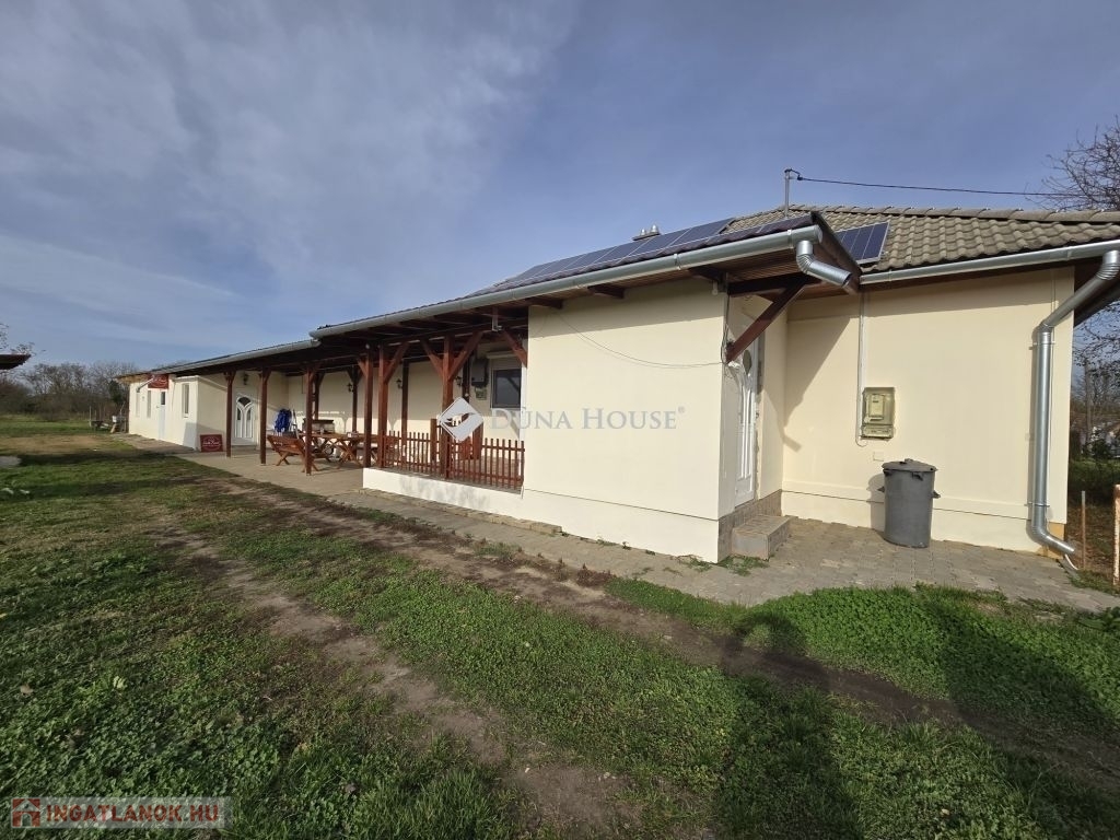 Eladó Görcsöny településen egy egy szintes, 2004-ben épült szép állapotú családi ház.Az ingatlan 4 lakószobával rendelkezik, alapterülete 100 nm, tetőszerkezete Bramac beton cseréppel fedve.A ház egy része tégla építésű, másik része könnyűszerkezetes, a falszerkezet 15 cm kőzetgyapot szigeteléssel, kívülről 10 cm külső szigeteléssel.Az ingatlan nyílászárói műanyagok, fűtése megoldott gázkazánnal, klímával (3,5 kW) , vegyes tüzelésű kazánnal, illetve elektromos kazánnal is.Az épület tetőszerkezetén elhelyezésre került 6,5 kW napelem is, mely az épület teljes villamosenergia költségeit fedezi.Elektromos autó öltésére is megfelelő.Ipari áram is elérhető az ingatlanban.Az ingatlan különlegessége, hogy a lakóépület folytatásaként, egy kislétszámú, HACCP előírásainak maximálisan megfeleltetett lakásétterem is tartozék!A falu ezen részén a csatornahálózat nem elérhető! Az épülethez tartozó területen 42 db gyümölcsfa, épített kemence és fedett terasz is található.Az épületek folytatásaként találunk egy 6x5 méteres fém szerkezetű tároló, ami raktárként, műhelyként használható.Ha további kérdése van, kérem hívjon bizalommal!