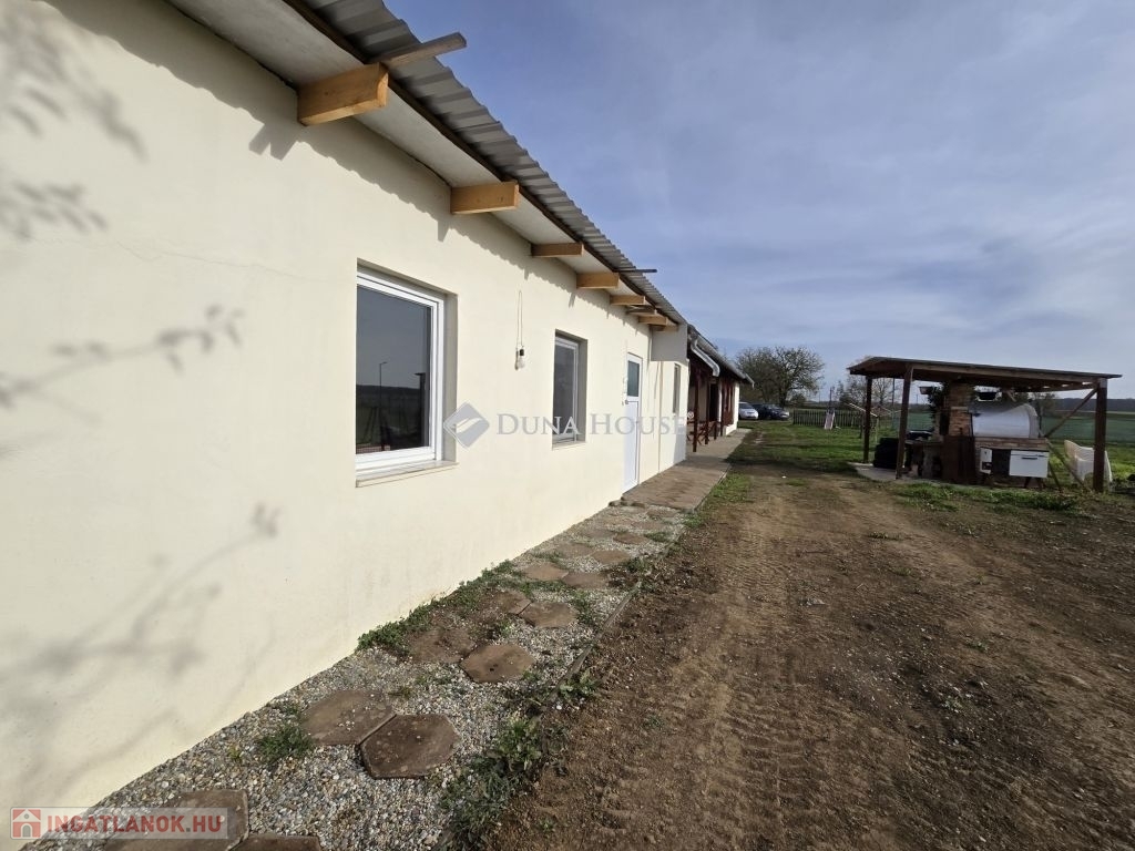 Eladó Görcsöny településen egy egy szintes, 2004-ben épült szép állapotú családi ház.Az ingatlan 4 lakószobával rendelkezik, alapterülete 100 nm, tetőszerkezete Bramac beton cseréppel fedve.A ház egy része tégla építésű, másik része könnyűszerkezetes, a falszerkezet 15 cm kőzetgyapot szigeteléssel, kívülről 10 cm külső szigeteléssel.Az ingatlan nyílászárói műanyagok, fűtése megoldott gázkazánnal, klímával (3,5 kW) , vegyes tüzelésű kazánnal, illetve elektromos kazánnal is.Az épület tetőszerkezetén elhelyezésre került 6,5 kW napelem is, mely az épület teljes villamosenergia költségeit fedezi.Elektromos autó öltésére is megfelelő.Ipari áram is elérhető az ingatlanban.Az ingatlan különlegessége, hogy a lakóépület folytatásaként, egy kislétszámú, HACCP előírásainak maximálisan megfeleltetett lakásétterem is tartozék!A falu ezen részén a csatornahálózat nem elérhető! Az épülethez tartozó területen 42 db gyümölcsfa, épített kemence és fedett terasz is található.Az épületek folytatásaként találunk egy 6x5 méteres fém szerkezetű tároló, ami raktárként, műhelyként használható.Ha további kérdése van, kérem hívjon bizalommal!