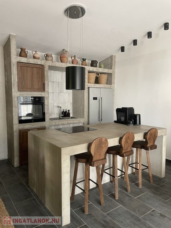 - teljesen felszerelt, gépesített konyha, konyhaszigettel és reggeliző pulttal