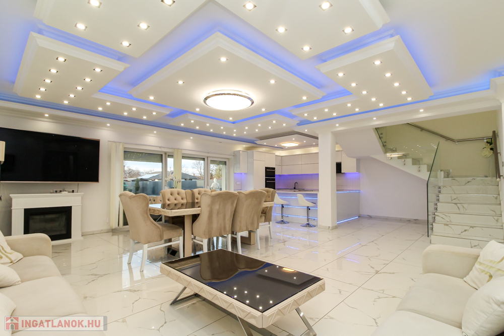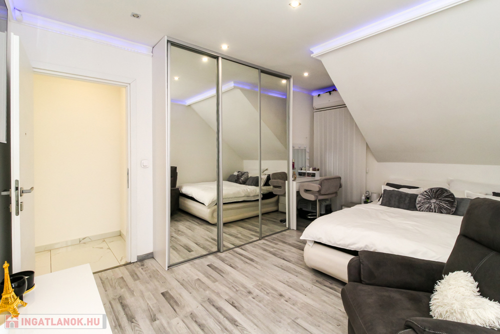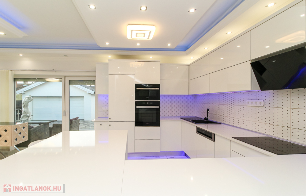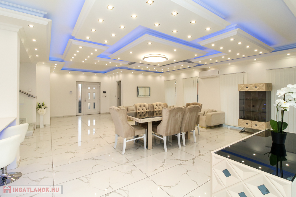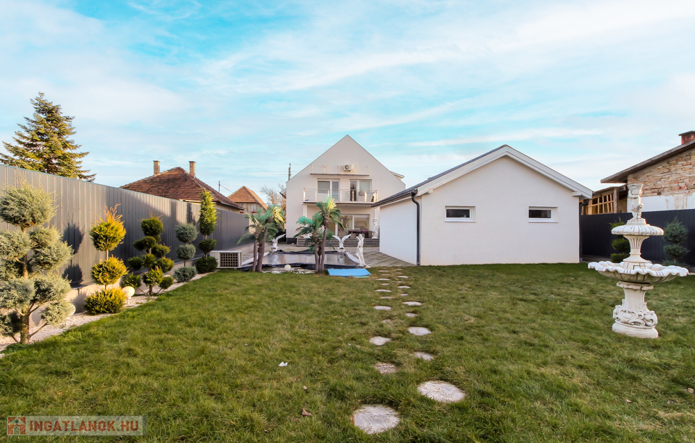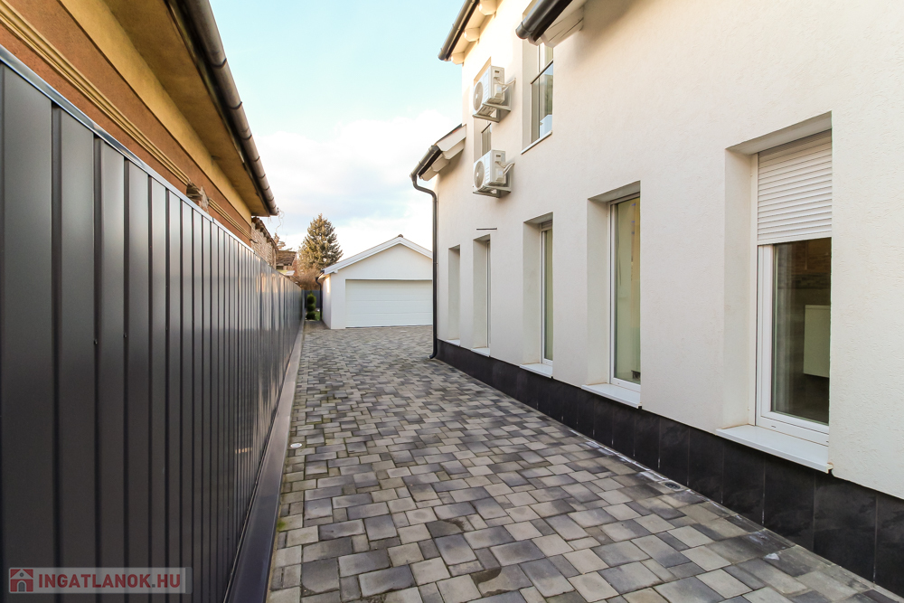 Brandneues Qualitätshaus zum Verkauf in Gyálon! Die Stadt Gyál liegt im Komitat Pest, im Ballungsraum Budapest, direkt im Budapest des 18. Jahrhunderts. neben dem Bezirk. Verkehrsknotenpunkte sind die Autobahnen M5 und M0. Die sich ständig weiterentwickelnde Siedlung wird durch die gute Luft, die waldreiche Landschaft, die Vielzahl an Stränden, Restaurants und die regelmäßige Organisation von Kultur- und Sportveranstaltungen nur noch attraktiver. Die Atmosphäre: Das auf einem flachen Grundstück gelegene Einfamilienhaus hebt sich durch sein äußeres Erscheinungsbild von den anderen Immobilien in der Gartenstadt ab, ist dabei aber zurückhaltend und nicht protzig. Beim Betreten der Eingangstür gelangt man in die beeindruckende, 60 m² große, offene Wohnküche, die das Zentrum des 172 m² großen zweistöckigen Hauses bildet und mit einer 17 m² großen Terrasse mit Blick auf den Garten verbunden ist. Die Verwendung hochwertiger Materialien fällt sofort ins Auge, angefangen bei den Kaltverkleidungen über die Einbauküche bis hin zum Geländer aus gehärtetem Glas im Treppenhaus, und ich könnte noch mehr aufzählen. Der moderne, geräumige und helle Innenraum zeichnet sich durch Schlichtheit aus, aufgepeppt durch die Atmosphäre, die durch die eingebaute Deckenbeleuchtung entsteht. Die italienischen Designmöbel verstärken nur das Gefühl, dass es sich hier gut anfühlt. Die vier Schlafzimmer im ersten Stock bieten den Komfort eines Hotelzimmers. Alle sind komplett möbliert, mit TV, Klimaanlage ausgestattet und mit einem kleinen oder großen Balkon verbunden. Die Wellis-Badezimmer mit Fenstern erhöhen den Komfort zusätzlich. Den genauen Grundriss und die Maße der Räume veranschauliche ich auf Grundrissen. Ihr Garten sorgt für maximale Entspannung zu Hause. Übersät mit Zierpflanzen und mit dekorativer Beleuchtung ausgestattet, lässt sich das automatische Bewässerungssystem über WLAN steuern. Der 4 x 7 Meter große Pool ist selbstverständlich beheizbar, der 25 Quadratmeter große Garten eignet sich für Grillabende und Familienfeiern. Die 42 m² große beheizte Garage bietet bequem Platz für 2 Autos. Kurze technische Beschreibung: Es wurde 2021 gebaut. Das Gebäude befindet sich innen und außen in einem neuwertigen Zustand – einschließlich der Ausstattung – was auf den Bildern deutlich zu erkennen ist. Substratschichtung: Kulturerde, 28 cm versiegeltes Kiesbett, 1 RTG. Dörken Delta MS, 12 cm Stahlbetonsockel, 1 RTG. bisschen. Qualifikation, 1 RTG. monolithische Stahlbetonplatte, Isolierung gegen TNDV, 14 cm stufenfeste Wärmedämmung AT-N150, 1 Schicht PE-Technologiefolie, 6 cm Estrich-Unterbodenbeton mit Netzverstärkung, 2 cm Keramikplattenbelag aufgeklebt. Tragkonstruktion: Porotherm-Mauerwerk 30 cm dick, Wärmedämmsystem AT-H80 THR 15 cm. Zwischenschichtung: 22 cm monolithische Stahlbetonplatte, 4 cm Trittschalldämmung AT-L4, 1 RTG. PE-Technologiefolie, 6 cm Estrich-Unterbodenbeton mit Netzverstärkung, 2 cm Keramikplattenbelag, warmer Belag aufgeklebt. Reihenfolge der Dachkonstruktionsschichten: 1 Rtg. RB 12,5 Gipskartonplatte, 7,5 cm Gipskartonrahmen für die Leitungen, Multirock-Wärmedämmung dazwischen, 1 RTG. Feuerbeständige Gipskartonplatte RF 12,5, 1 RTG. Dampfsperrfolie, 20 cm Multirock-Wärmedämmung, 2 cm OSB, Dachbodenraum, 20 cm Dachsparren, 1 RTG. dampfdurchlässige – wasserdichte Unterlage, 5 cm Konterlatte, 3 cm Dachlatte, Keramikfliesenschale. Heizen-Kühlen, Beschattung, Sicherheitstechnik: Ariston-Brennwertkessel - Fußbodenheizung im Erdgeschoss, mit Heizkörper-Wärmeübertragung im Obergeschoss. 5 Klimaanlagen, Fensterläden. Kamera-Zugangskontrollsystem – codiert, Kartenzugang, Alarm. Elektroauto und Garagentor. Überwachungssystem mit sphärischer Kamera für den Außenbereich. Wenn Sie an diesem Punkt angelangt sind, können Sie sehen, dass ich Ihnen im persönlichen Gespräch eine ordnungsgemäß gebaute Immobilie mit hohem technischem Inhalt präsentieren werde. Rufen Sie mich gerne schnellstmöglich an, kommen Sie vorbei!