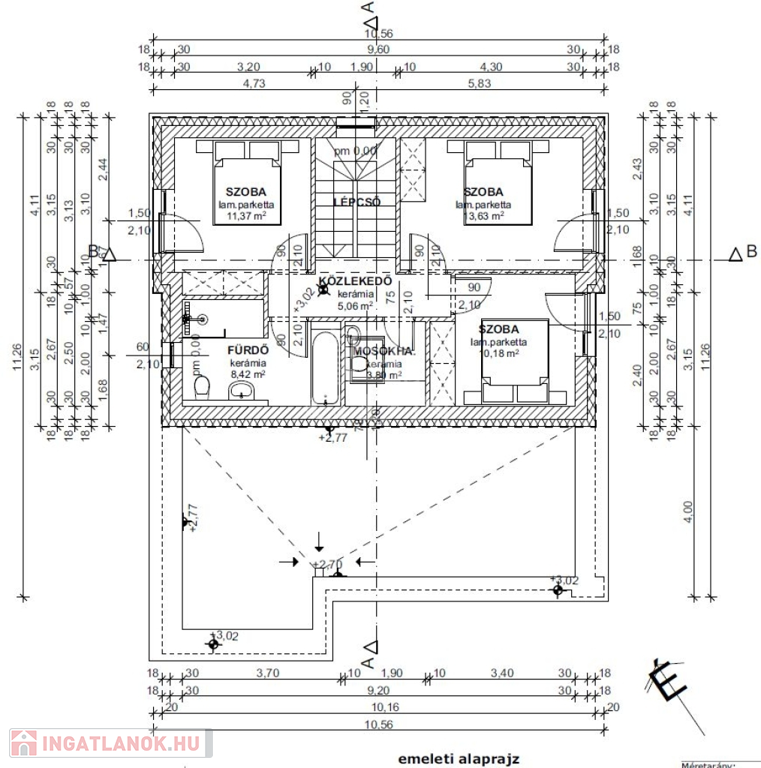 - Falazatok: külső-belső teherhordó falak: POROTHERM 30 X-Therm., belső válaszfal: POROTHERM 10 NF