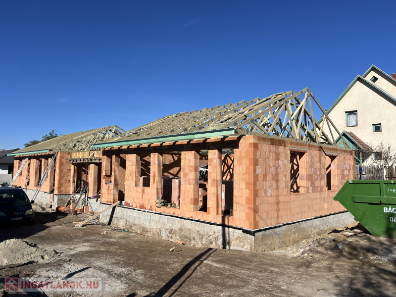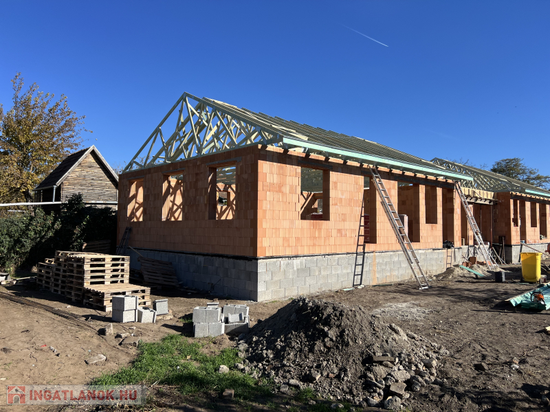 Vasbeton sávalap, Rapid X-Therm PTH 30CM tégla főfalak 20 cm-es dryvit hőszigeteléssel. Műanyag homlokzati nyílászárók 3 rétegű üveggel. Beton födém 20 cm ásványszálas hőszigeteléssel. Fűtés és meleg víz hőszivattyúról, mindenhol padlófűtés . Antracit beton cserép héjazás. Festés, burkolás, szaniterek, belső ajtók választhatók. A hideg burkolatok 7000 Ft./m2 árig , meleg burkolatokat 4500 Ft./m2 árig, a belső ajtókat 50.000 Ft./db. árig tartalmazza a vételár. Riasztó vezetékelve, klíma becsövezése, rejtett redőnytok kialakítás,alumínium redőnyök fehér színben, elektromos kiállások a redőnynek , elektromos kiállás a kapuknál. H tarifa kiépítve, kocsibeálló viacolor (10x20-as) szürke, kiskaputól bejáratig Viacolor (10x20-as) szürke, a ház körül 40 cm széles védőjárda szegélykőből, közé apró kaviccsal betöltve.
