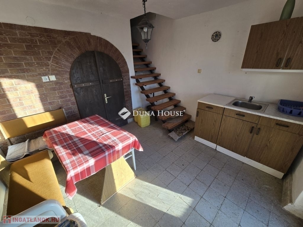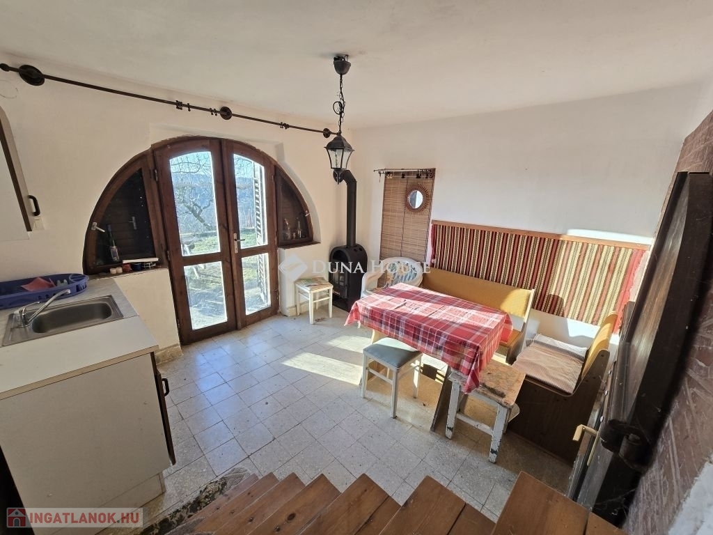 Panorámás zártkerti telek kis házzal eladó Gyódon, Pécstől 5 km-reGyód felső részén, a napos fennsíkon eladó egy 700 m²-es, panorámás, zártkerti telek egy kb. 20 m² alapterületű, belső kétszintes gazdasági épülettel, mindössze kb. 5 km-re Pécstől.Az épület 1985-ben épült, karbantartott állapotú. Nem lakóingatlanként használták, de felújítással akár állandó lakhatásra is alkalmassá tehető, a környéken többen életvitelszerűen laknak.Az alsó szinten konyhaétkező, wc kézmosóval, valamint egy könnyen megközelíthető pince található (csak egy lépcsőfok vezet le). A felső szinten két egymásból nyíló helyiség van, amelyek szobaként használhatók.A telek körbekerített, két utcáról is megközelíthető, aszfaltos úton elérhető, hivatalos házszámmal rendelkezik (Mezőszél utca 38). A terület lejtős, nyugati tájolású, így napos és szép panorámával rendelkezik.A telken vezetékes víz van a házban, ami a zártkerti ingatlanoknál külön előny. Gáz a telken belül megtalálható, jelenleg kályhával fűthető az épület. Emellett kerti csap, ciszterna, ülepítős szennyvízmegoldás, pince és egy kisebb szerszámtároló is tartozik az ingatlanhoz.Ideális választás lehet hétvégi háznak, kertészkedéshez vagy felújítás után akár állandó lakhatásra is.A terület művelés alól kivont,így azonnal birtokba vehető.