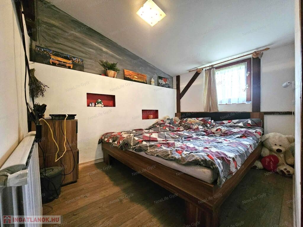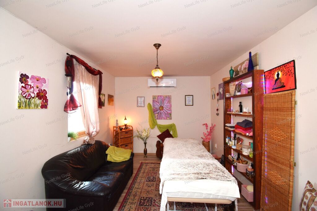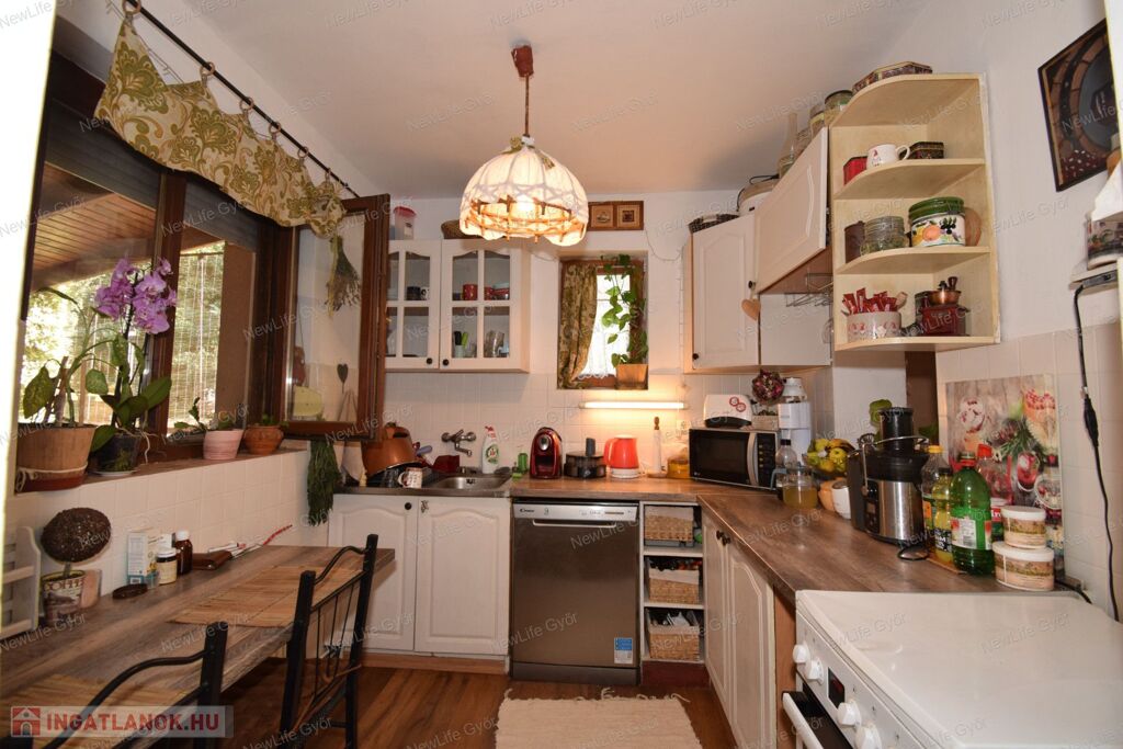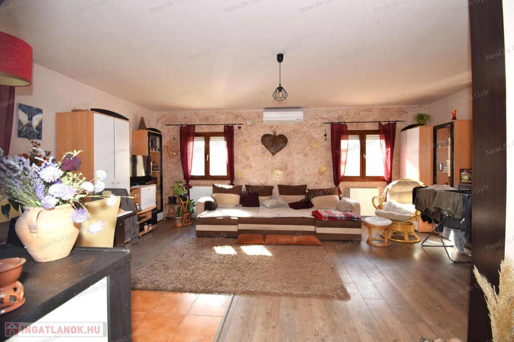 Mert 8 percre Győrtől, 6 percre az Auditól, csendes, nyugodt környezetben található, üzleti célú ingatlan is található a telken, szigetelt ház, melyben három féle fűtési alternatíva is működik. Egy családnak kiváló méretű ház, csodás kerttel.
