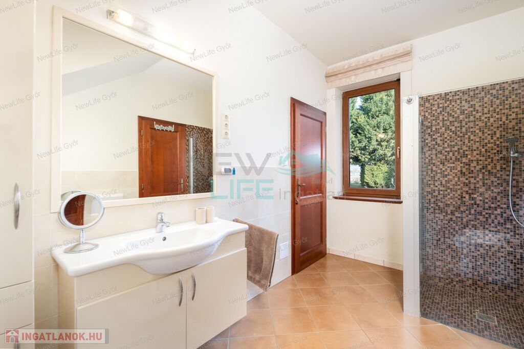 Győr csendes, családi házas övezetében, Ménfőcsanakon várja új tulajdonosát ez a 2008-ban épült, luxus családi ház. A 6247 m²-es sík telken elterülő, 340 m² alapterületű ingatlan nem csak méretével, hanem egyedülálló kényelmével is lenyűgöz.