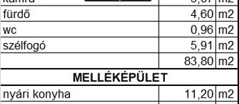 A főépülettől külön áll egy 39 m²-es melléképület, benne nyári konyhával (gáz bevezetve), zárt tárolóval és egy nyitott tárolóval.