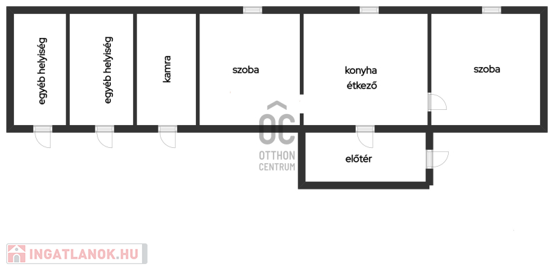 Az ingatlan 2 szoba, középen egy konyha-étkező, előszoba, kamra és több melléképületből áll.Fürdőszoba nincs a házban, a wc kint helyezkedik el.