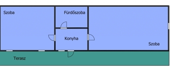 Helyiségek: 2 szoba, Étkezőkonyha, Fürdőszoba, Terasz