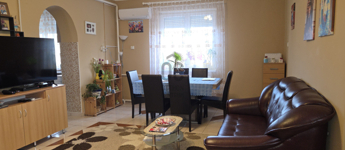 Hajdúsámson központi részén, egy csendes átmenő forgalomtól mentes utcában eladásra kínálok egy 1988-ban épült 764 m²-es telken álló nettó 121 m2 alapterületű + 85 m2 szuterénes családi házat.